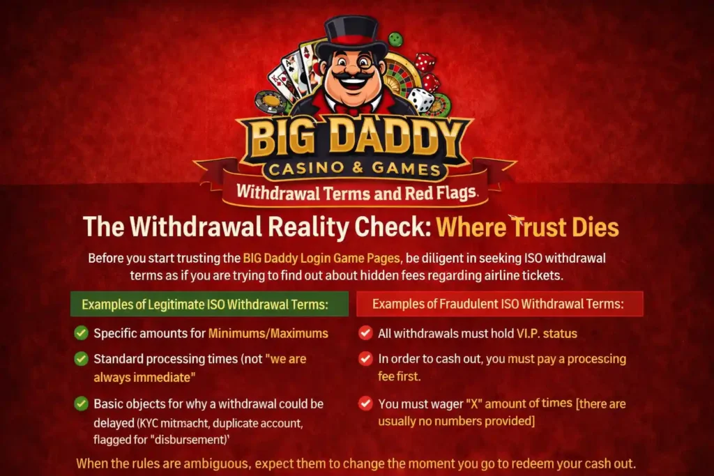 Before you start trusting the BIG Daddy Login Game Pages, be diligent in seeking ISO withdrawal terms as if you are trying to find out about hidden fees regarding airline tickets.